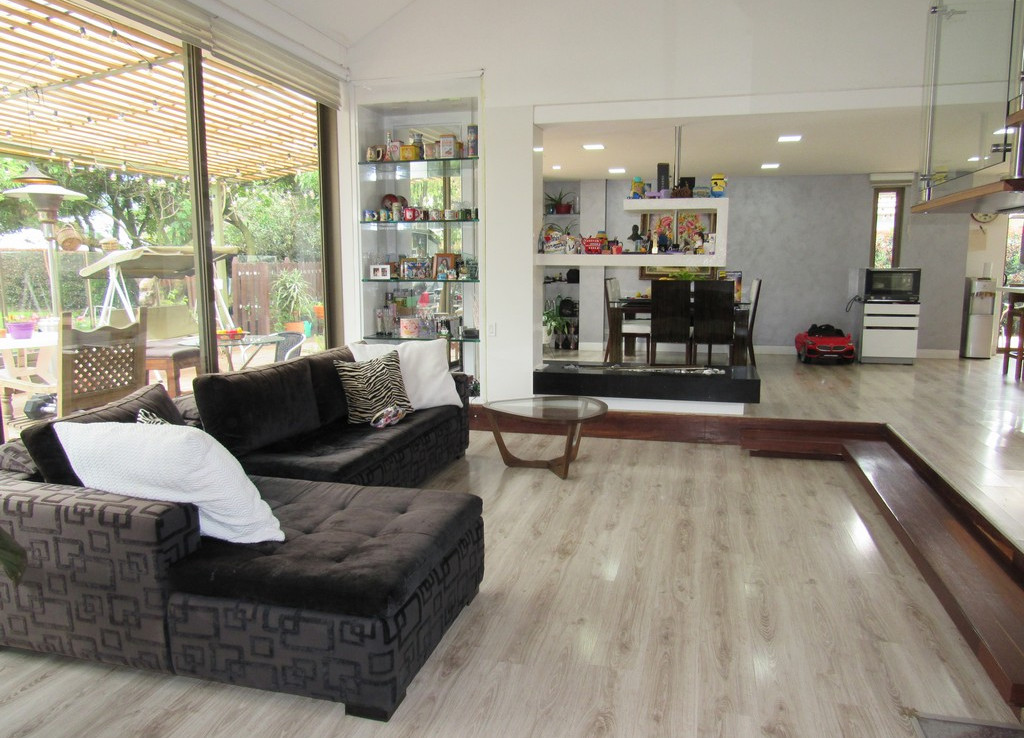 Venta de Casa Campestre en Condominio Vizcaya en Cota en lote independiente con área de 1.337 metros, aislada por cerca viva Eugenia en un construida de 284 Metros. El primer nivel está conformado por baño social una habitación con baño privado sala con chimenea, comedor, cocina integral con isla, estudio, zona de lavandería cuarto y baño de servicio. Segundo nivel: family room con altillo, habitación principal con baño privado y Walking closet dos (2) habitaciones con baño privado y closet. Todos los pisos son en Madera, (6) seis parqueaderos amplio depósito exterior hermosas zonas verdes y preciosos jardines exteriores. Adicional el conjunto está dotado de gimnasio salón social parques infantiles alamedas zonas para trotar montar bicicleta canchas deportivas y canchas de tenis.